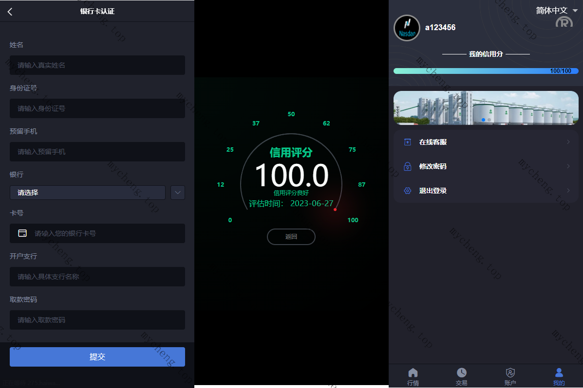 前端功能简洁,K线UI优美,用户信用分后台可更改