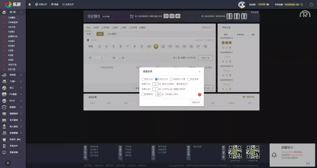 测试环境:Linux系统(CentOS 7.6)、宝塔面板、Nginx、PHP 5.6、MySQL 5.6,伪静态配置参考搭建说明,并已启用SSL证书。这是大富二开的程序,前后端进行了全面重构,用户体验远超原版,并且在功能上进行了扩展,包括新增的快三和红黑码玩法等。程序已经開源,包括合买和开奖采集等功能。针对大富自带的SQL注入后门问题,已进行彻底清理。只要防火墙配置得当,简单的渗透攻击基本无法突破。且该程序已转为Linux版本,大大提升了系统的安全性。
