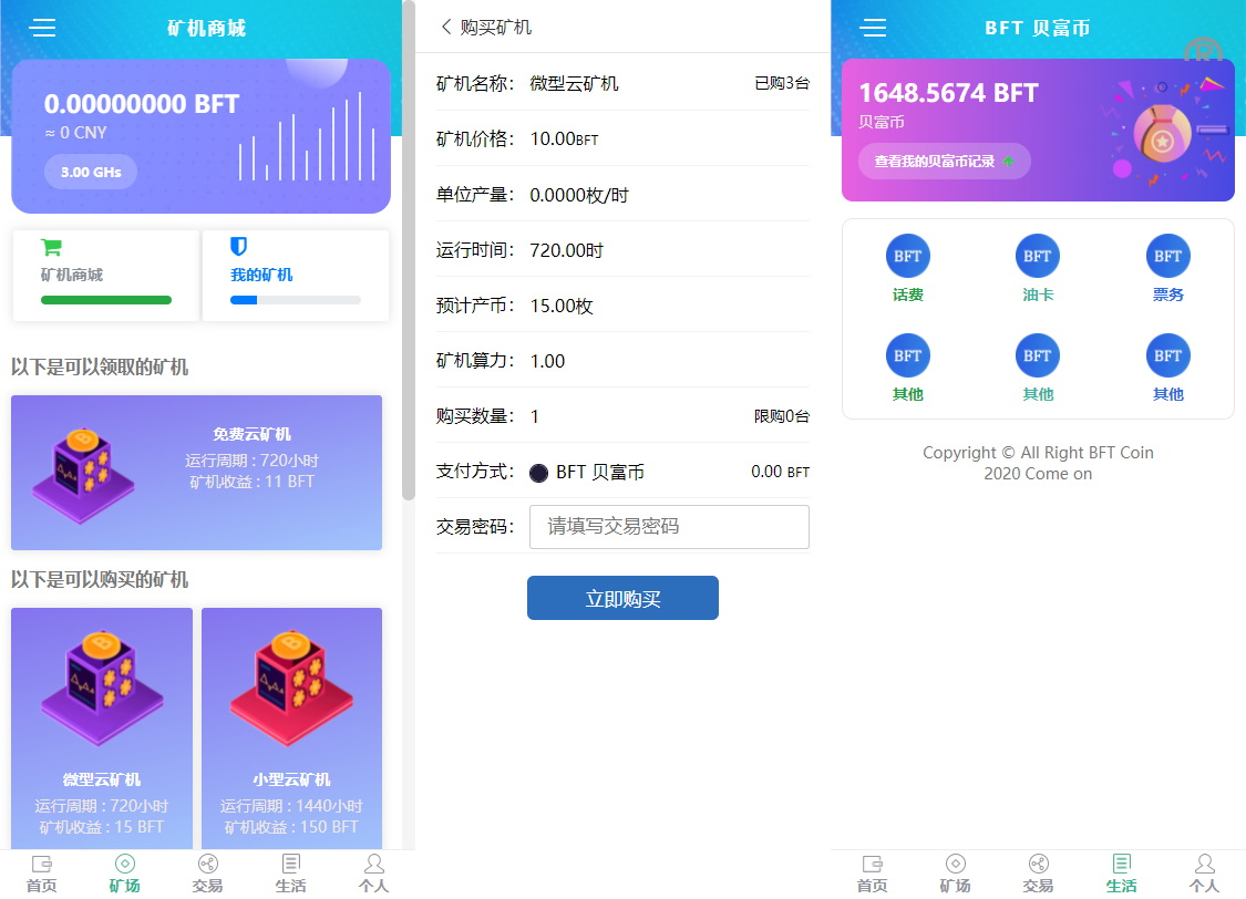 一个币起卖,注册实名认证通过【送体验矿机一台周期30天产12币】赠送矿机没有算力。