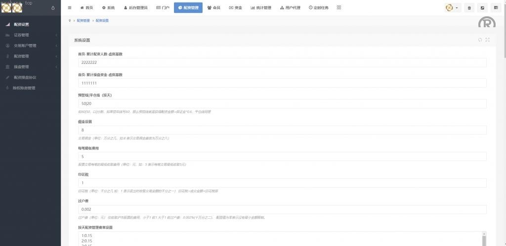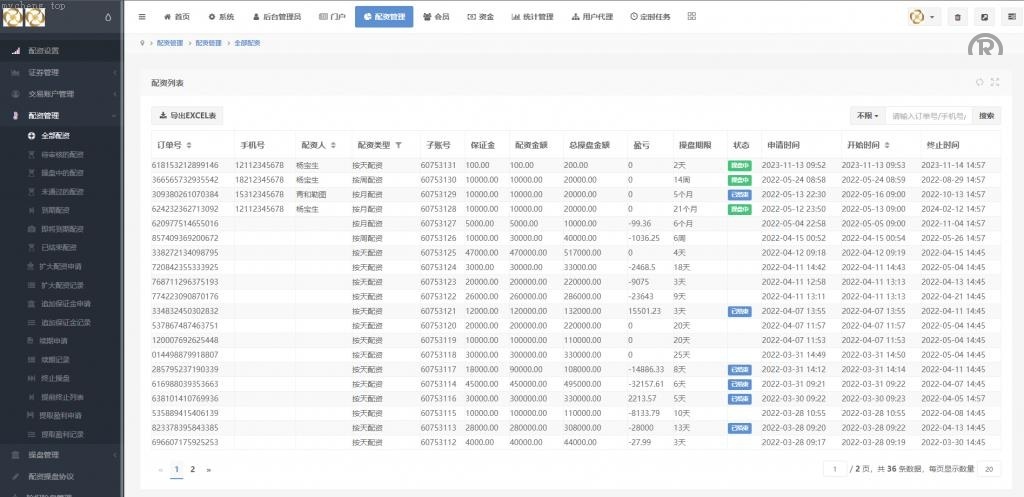 前端使用UniApp开发并附带源码,后端基于ThinkPHP框架。系统实现了完整的K线数据对接,分时走势正常显示。支持1~10倍配资,后台可根据需求调整配资倍数。系统设有预警线和自动平仓线,并支持按天、按周、按月进行配资,到期后可自动延期并扣除相应手续费。