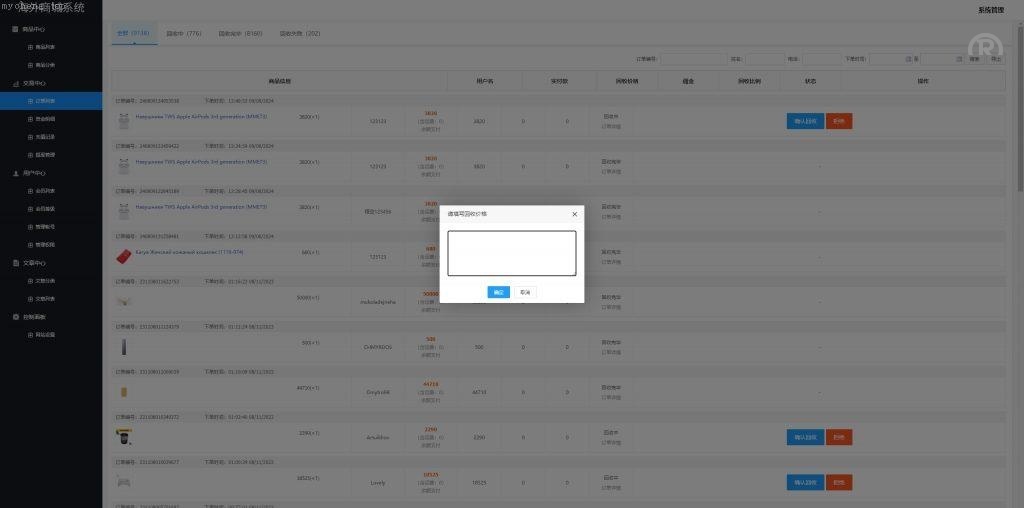 前后端UI进行了二次开发和定制,前端新增多語開源支持:中文、英文、越南语、波斯语和乌克兰语。系统支持用户订单提交回收,后台可自定义设置回收价格,需要请联系客服。