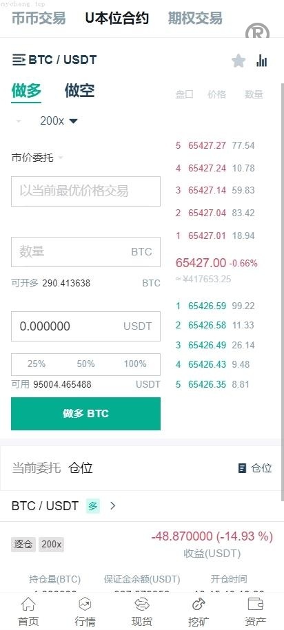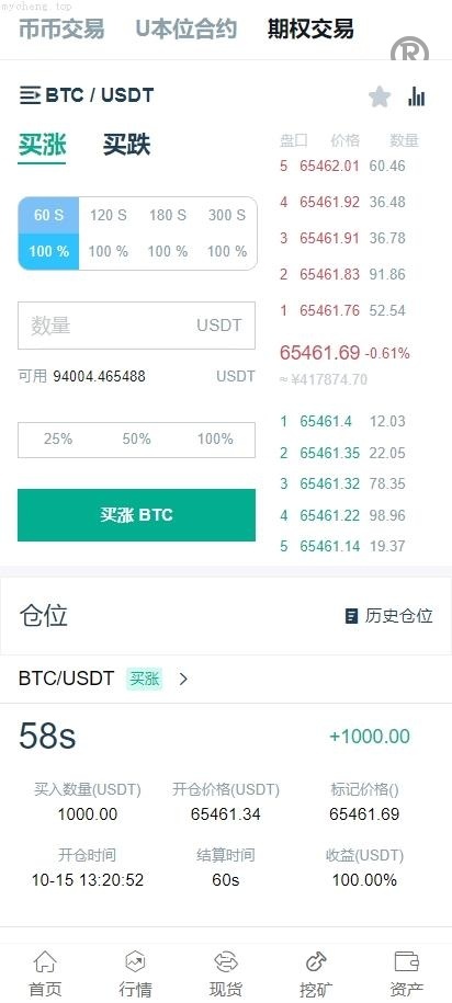 系统功能包括:币币交易、U本位合约、期权交易、挖矿、兑换等多种功能。