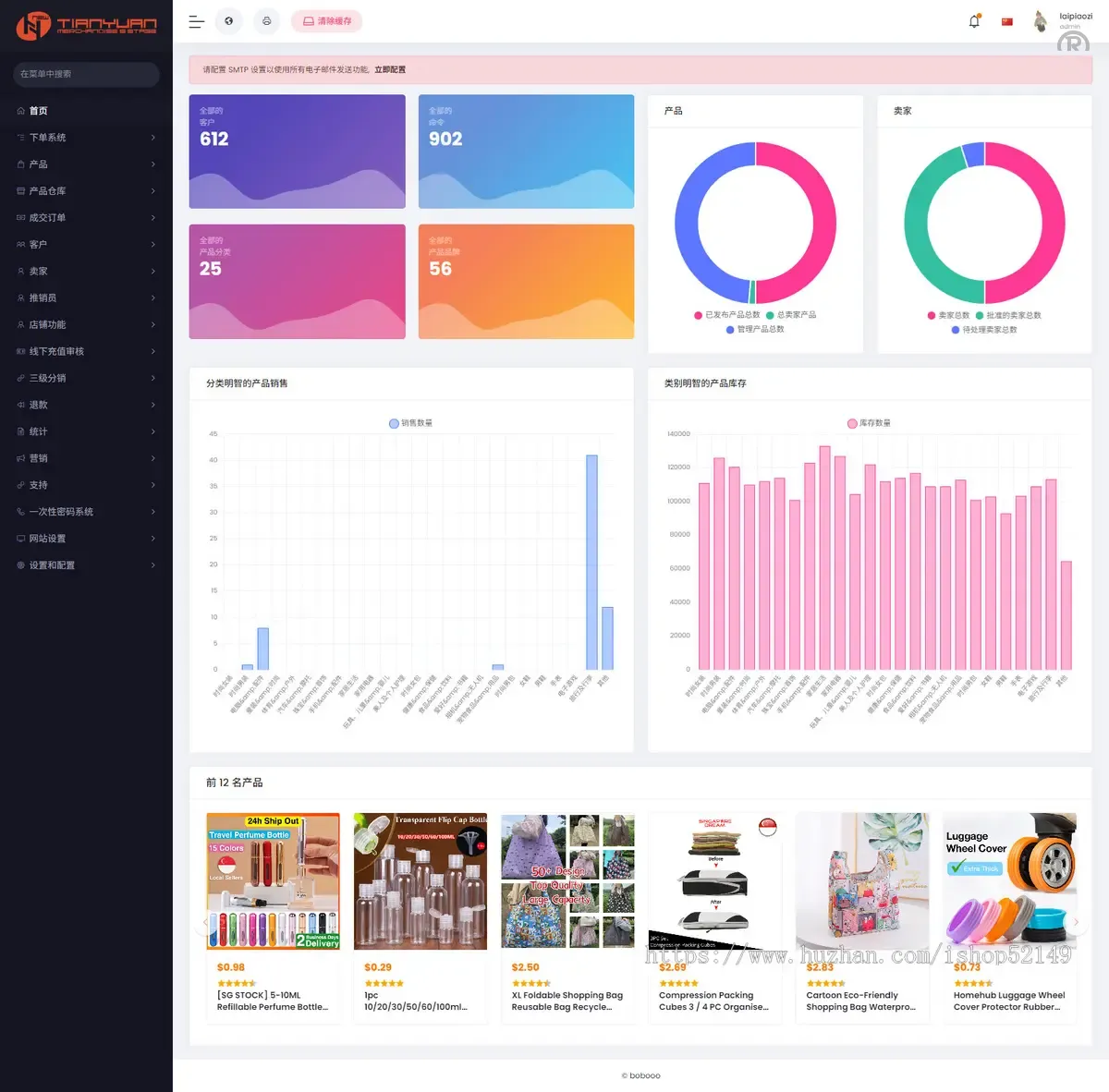 3.手机电脑前台后台都可以自适应包括商家后台也可自适应让客户实现手机即可一键铺货后台数据一目了然