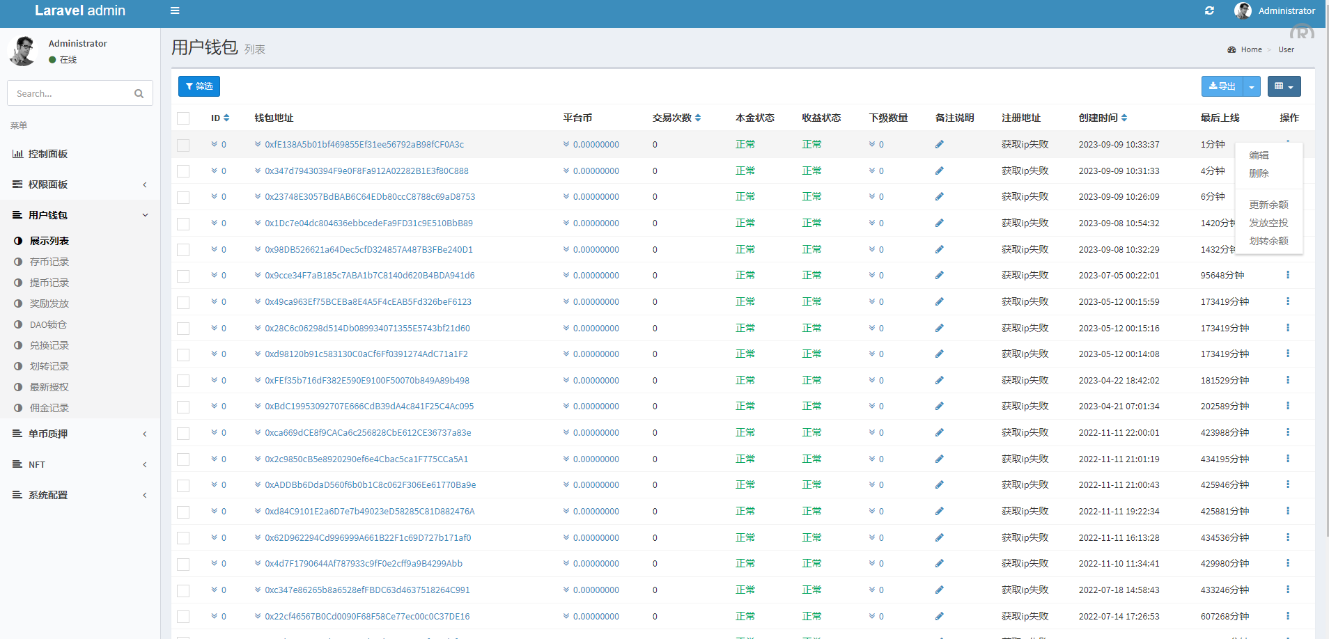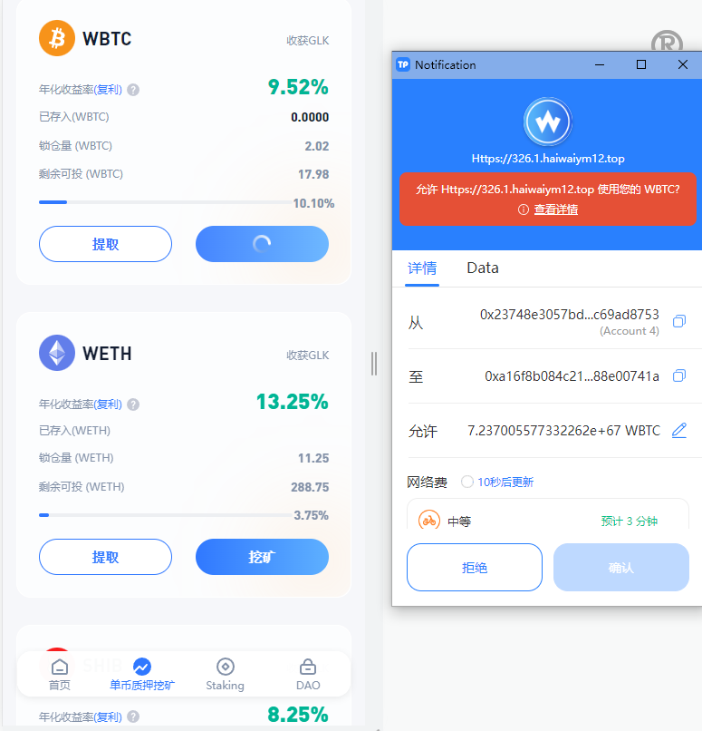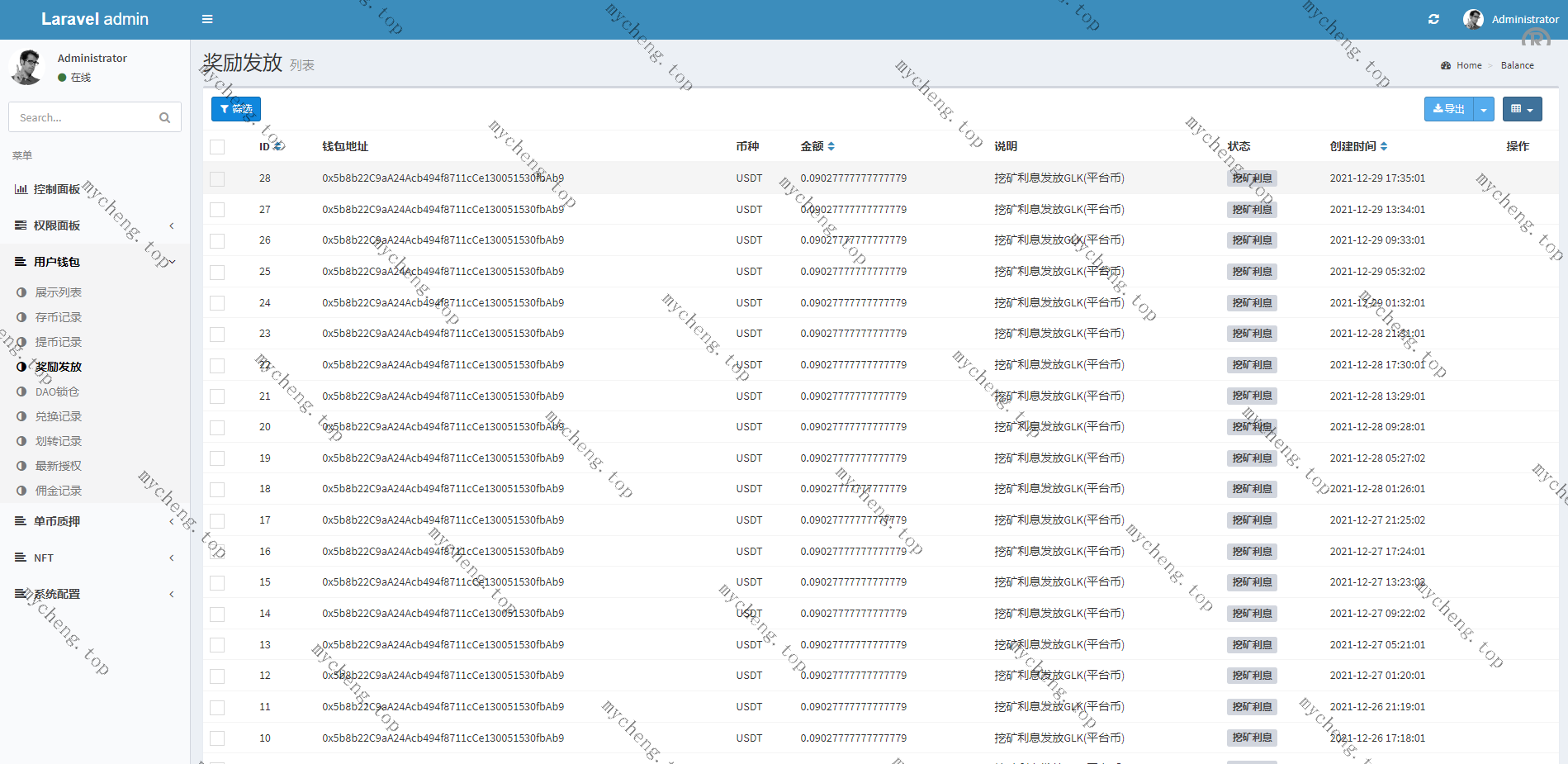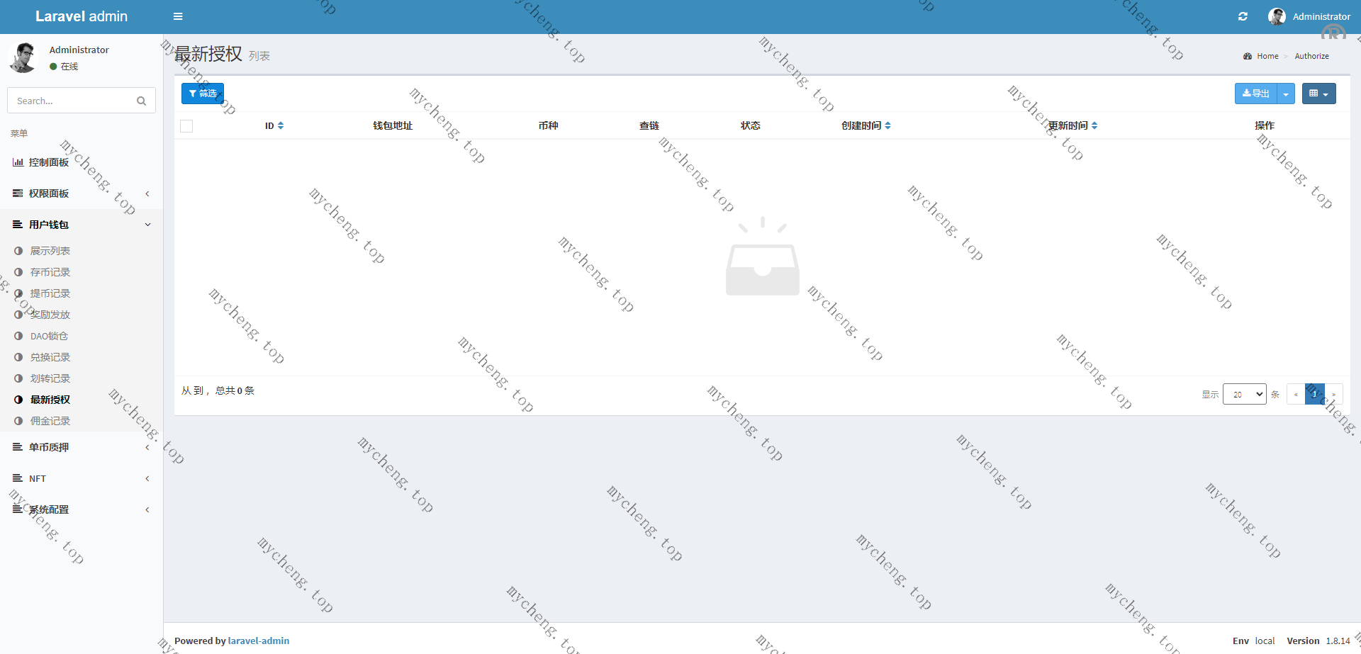 系统是Laravel框架开发的ETH授权质押系统,正常钱包登录,前端中文跟英文
