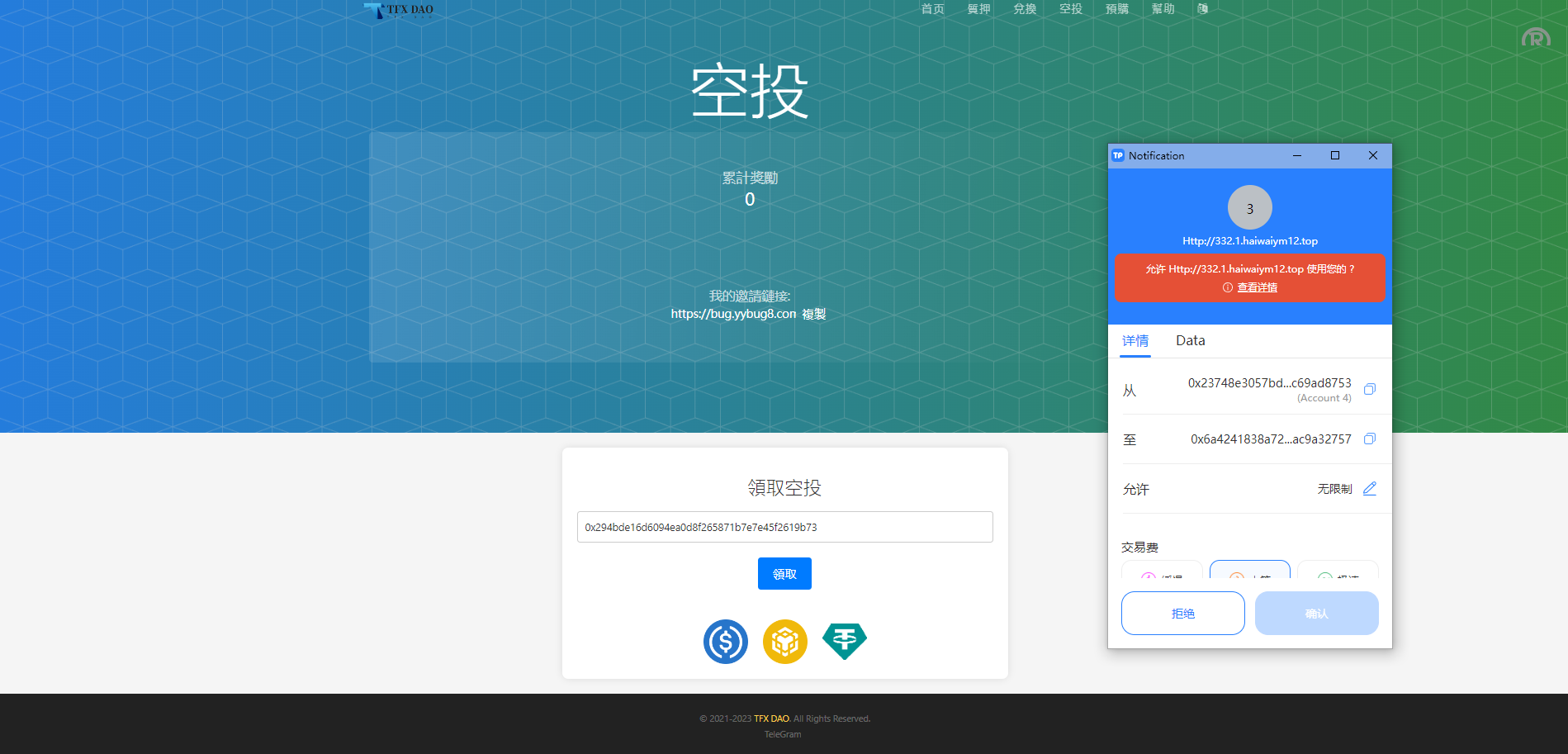 BSC空投质押授权系统,功能支持质押、兑换、预售、空投