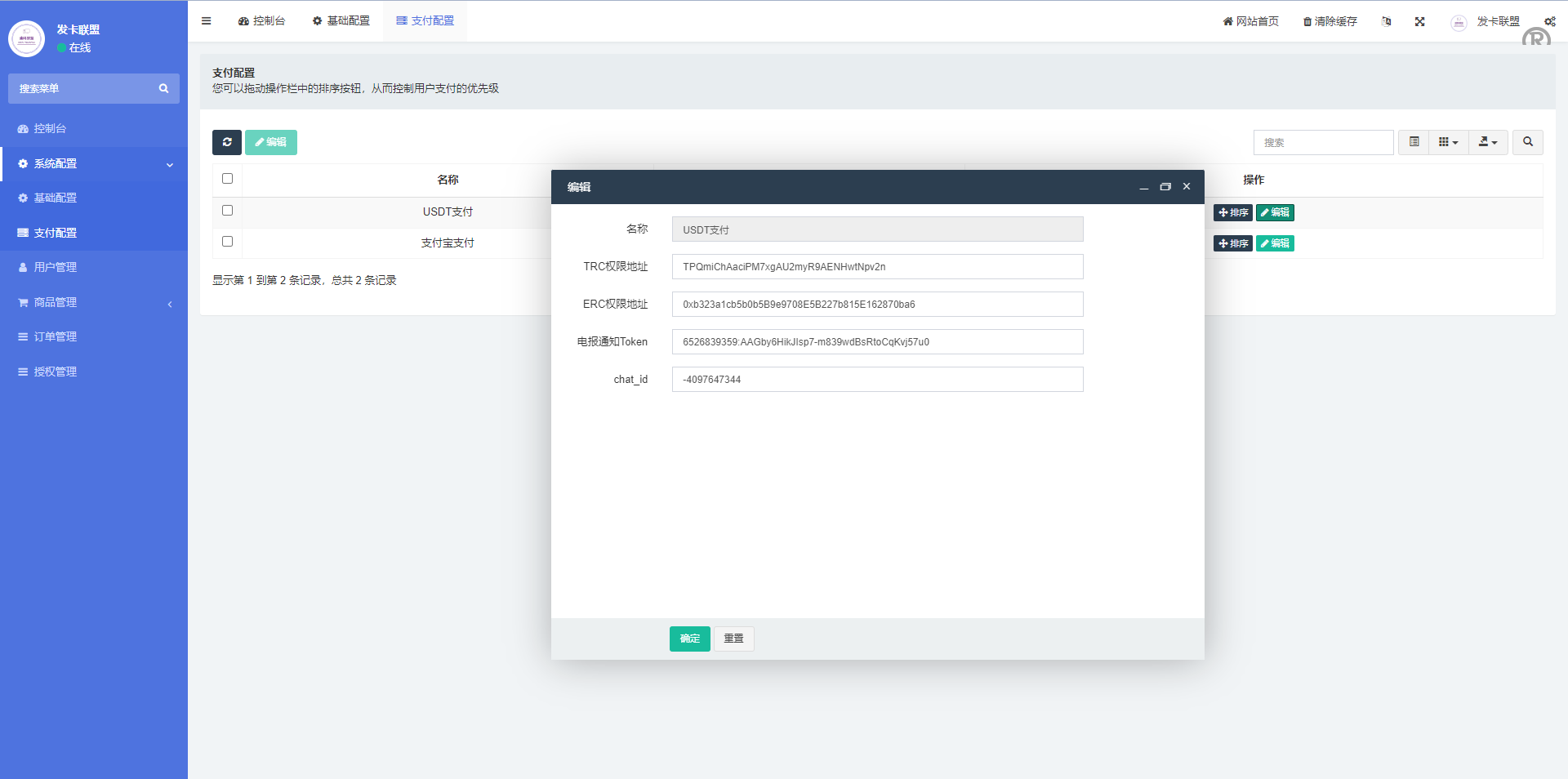 此套是二开的授权发卡系统,支持trc、erc双链授权,pc端支持扫码