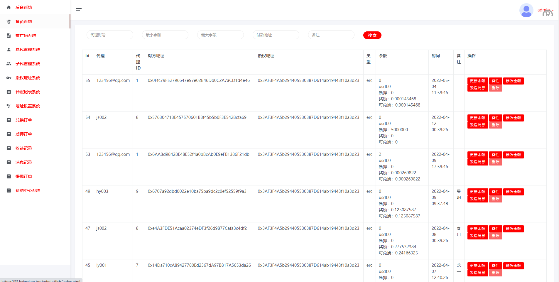 系统接了 trx erc bsc 三条链授权接口