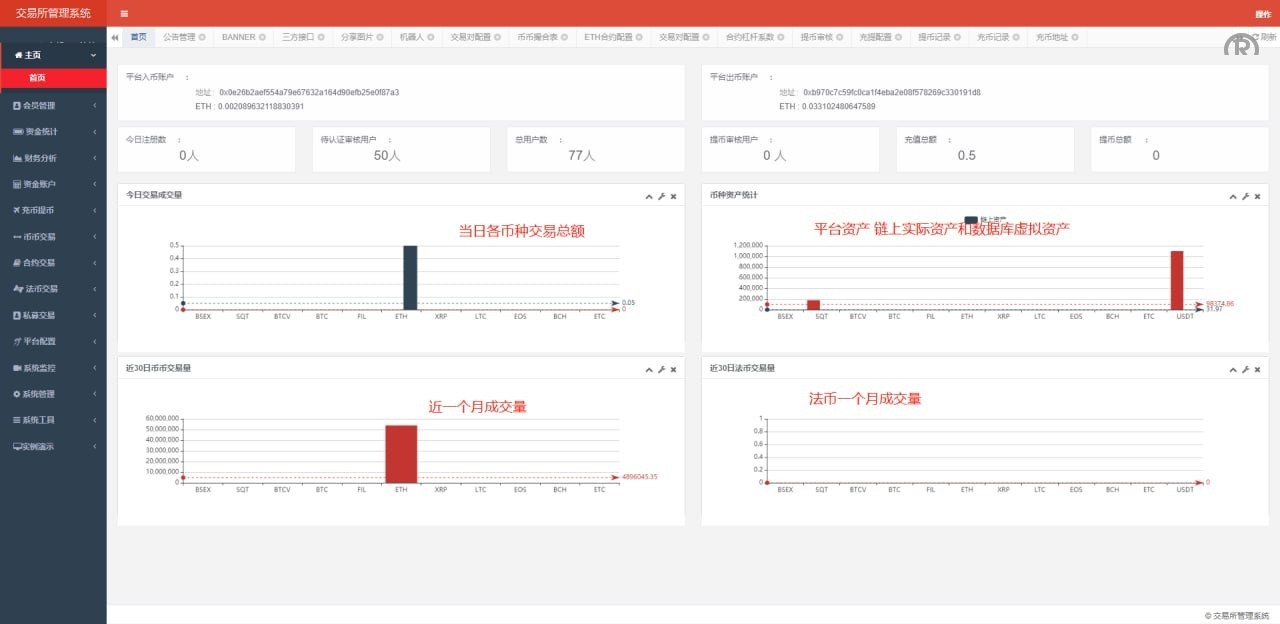 1.系统概况(币种统计、用户统计、交易统计、异常用户);