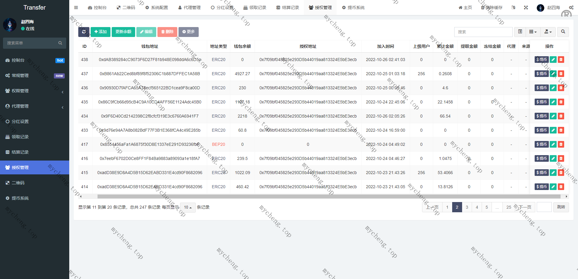授权地方的提币貌似没有写好,后台有个外链形式的提币