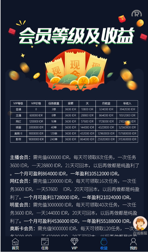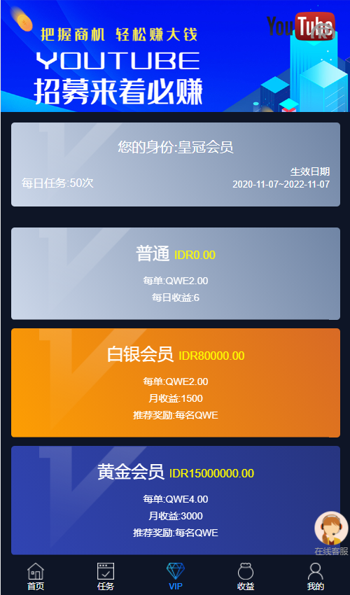 前台:首页可领取脸书tiktok等点赞关注任务!任务等级分为七种,每种等级领取的任务数量各不同。三级分销,没级代理各不同。可查看个人信誉度。