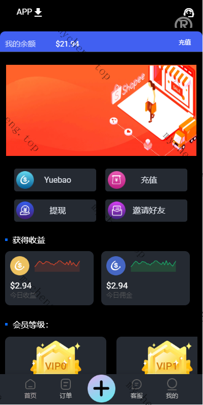 - 支持三级分销,带客服功能,优先级按等级排序,充值提现优先,完美的后台查询功能。