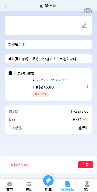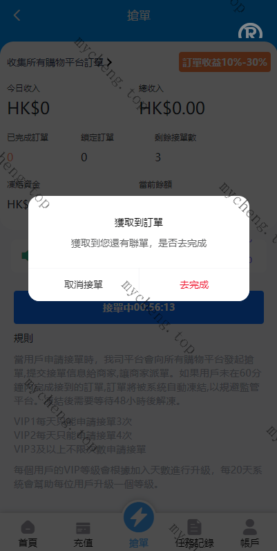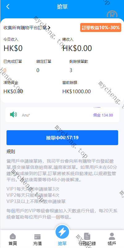 二次开发版抢单刷单系统,支持简体和繁体双语言。功能包括倒计时抢单,并且后台可指定派单、连单和卡单操作。