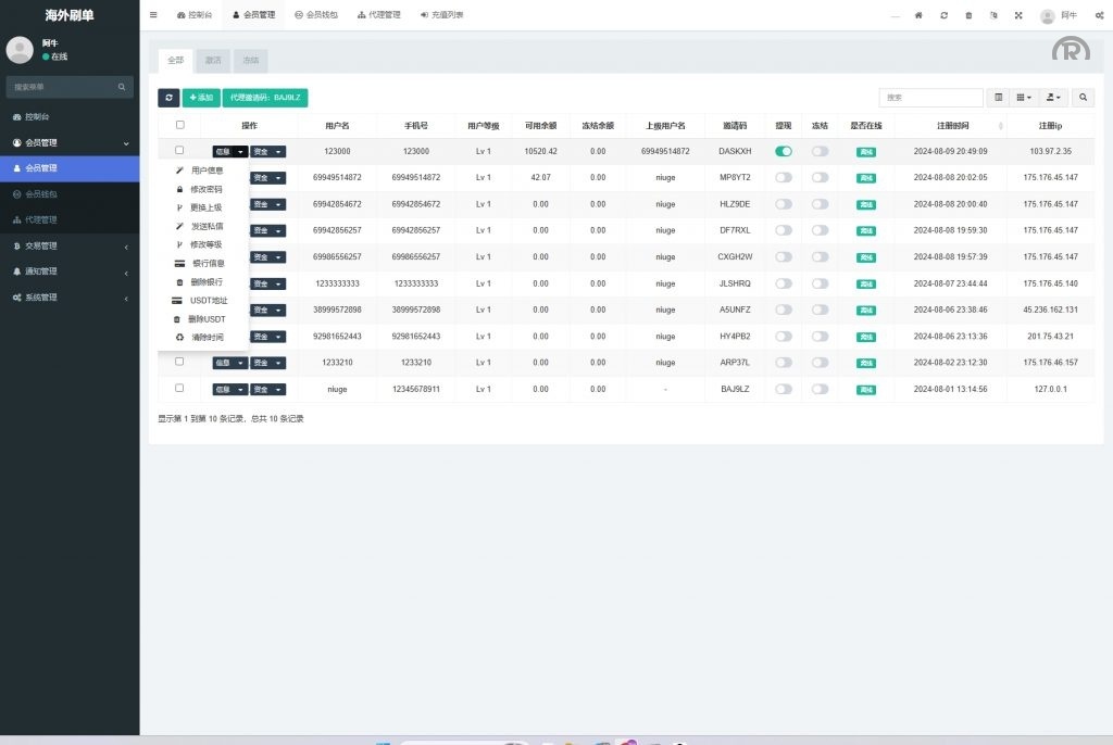 全开源的前后端系统,前端采用Vue开发,支持多語開源,后端基于PHP构建,并附带详细教程。系统核心功能包括灵活的订单指派机制:允许自由设定每个订单的金额及佣金比例。此外,系统还支持用户信用分管理、新用户注册奖励设置、针对特定用户的提现限制或冻结操作,以及权限代理后台管理。