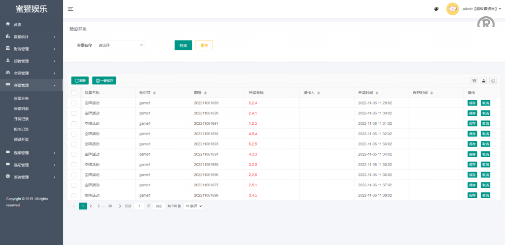 所有彩种都是系统彩,后台可控制开奖结果,可以提前预设开奖内容,带开奖脚本