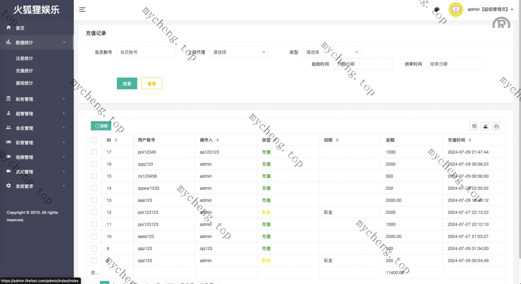 充值提现统计 查询