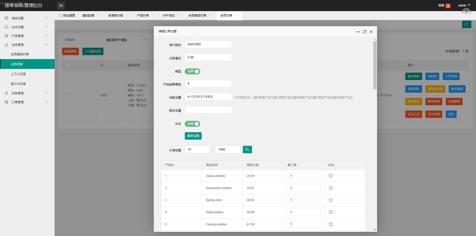 代理功能采用权限管理机制,后端支持设置卡单和连单操作,确保系统能够稳定高效地运行。