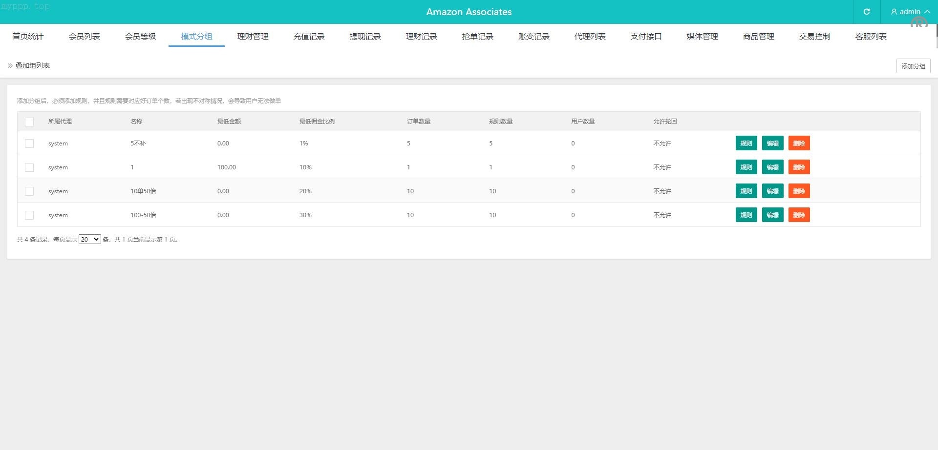 该系统具备多种实用功能,例如叠加分组、注射管理等特色模块,同时支持USDT充值操作,还包含权限管理和代理后台设置。