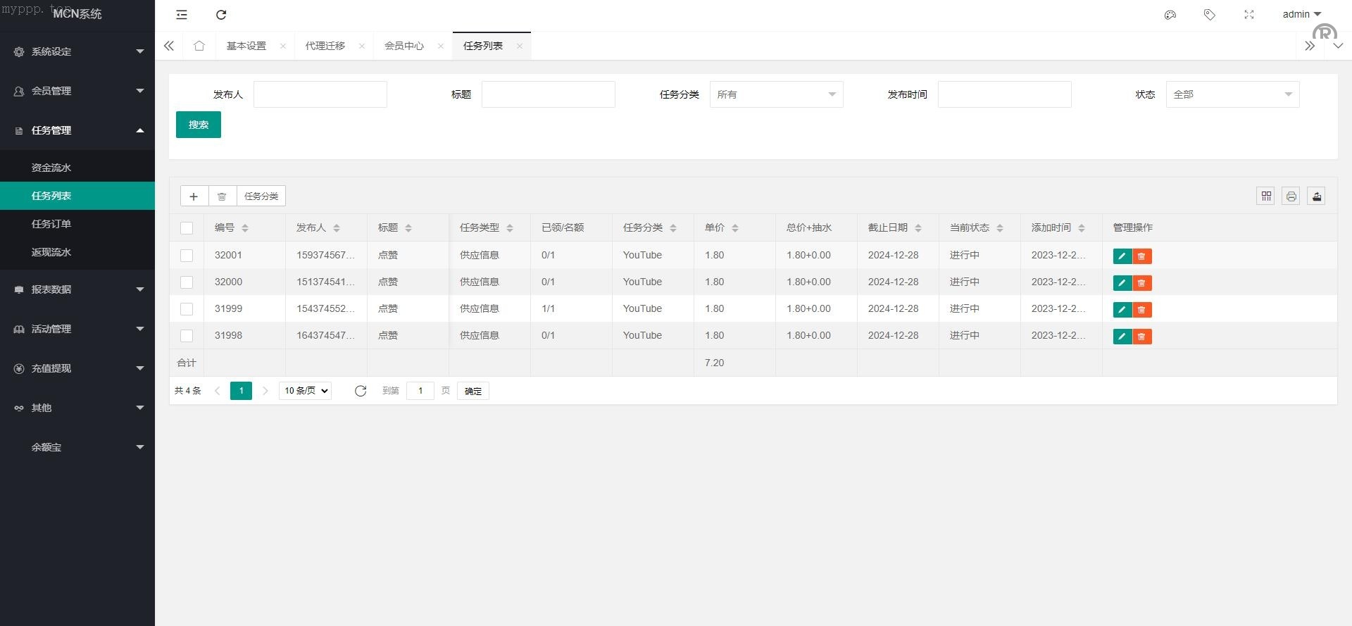 3、后台管理员将对提交的任务进行审核,审核通过后确认发放佣金。