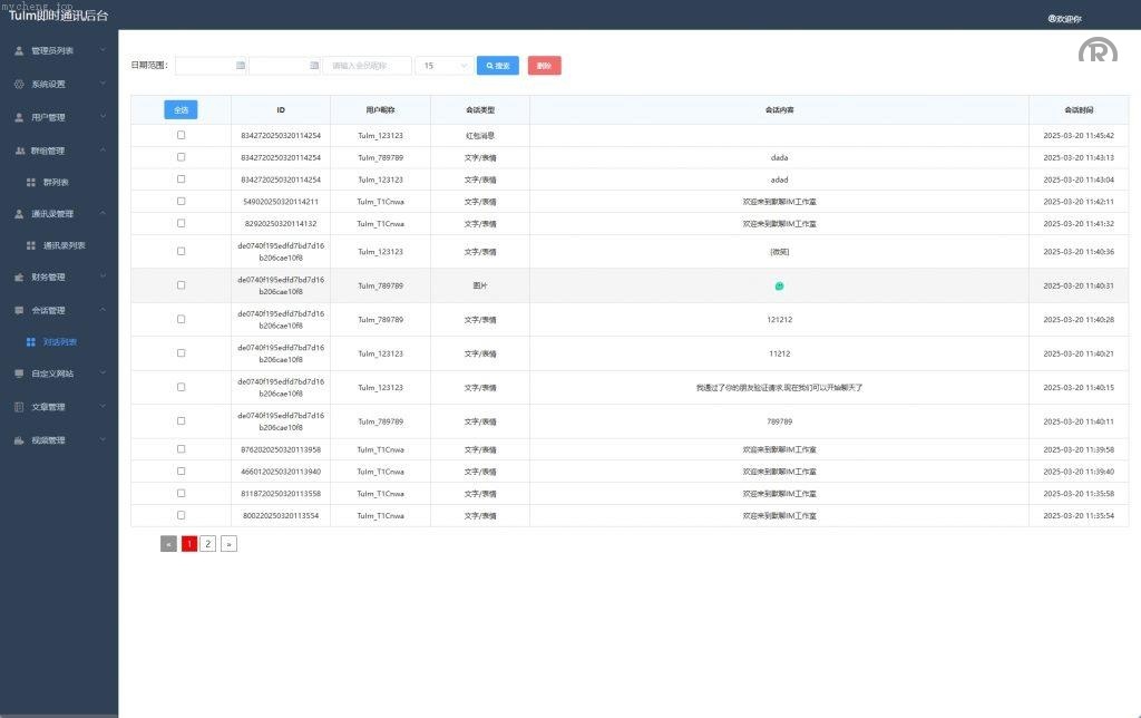 支持文字、表情、图片、语音、单聊、群聊、在线离线、撤回、已读未读、红包、消息群发、消息转发、内嵌外链、敏感词等完备的IM功能。