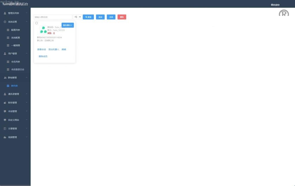群聊:快速实现群组聊天,单人禁言、全员禁言、群红包、设置管理员、踢群成员等灵活的群组成员和权限管理。
