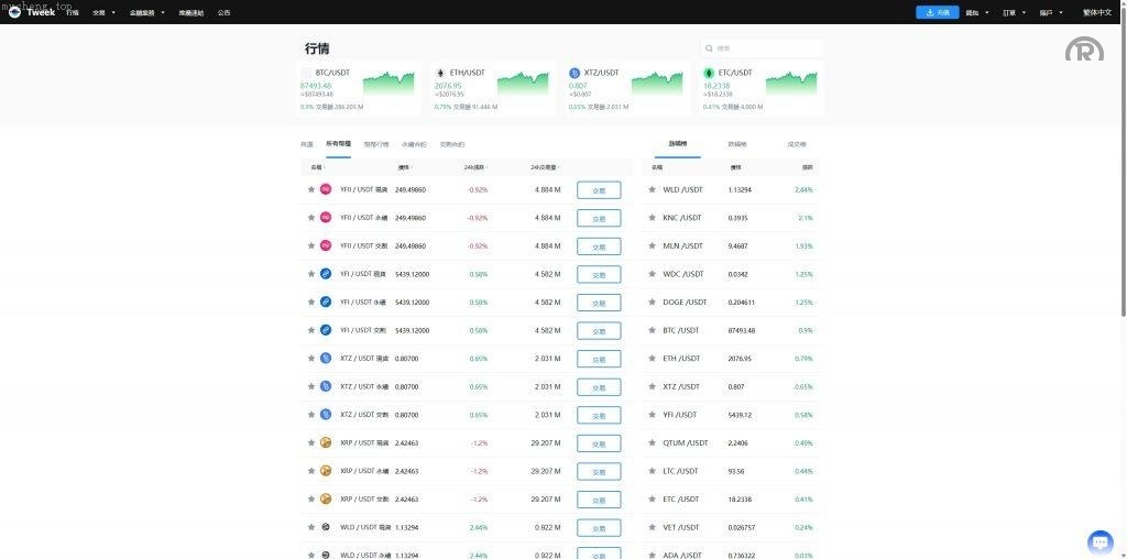 系统功能:永续合约、交割合约、现货交易、理财、矿池、质押借币、C2C等功能