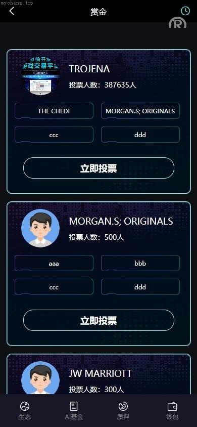 综合性数字资产管理平台,整合了质押、AI基金投资、加密货币交易、邀请奖励和社区投票等多种功能