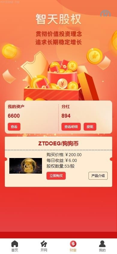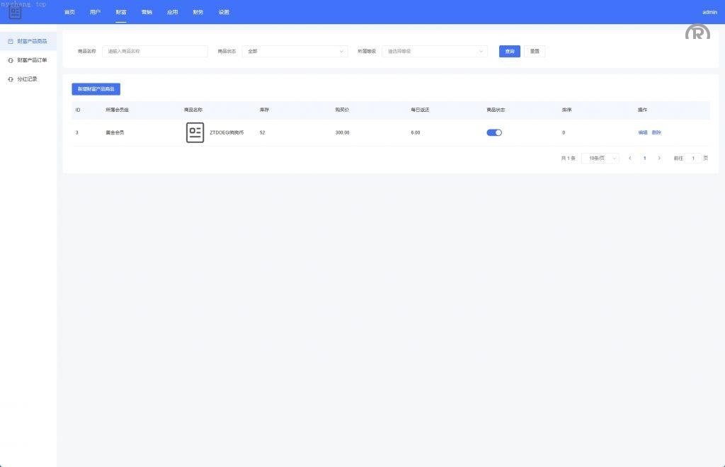 系统功能:产品投资分红、等级购买、签到、三级分销等功能