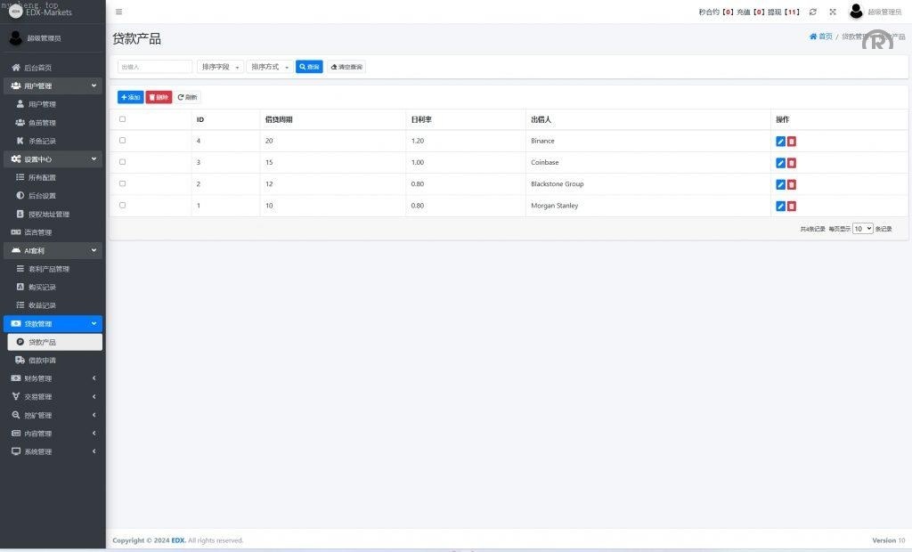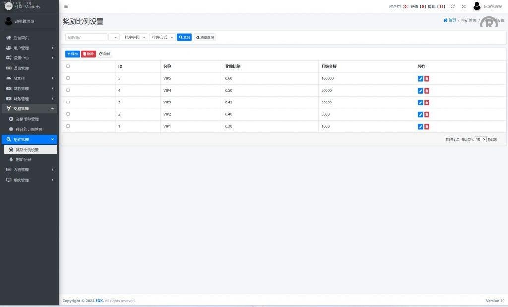 系统功能:秒合约交易、套利、矿机、借贷等功能