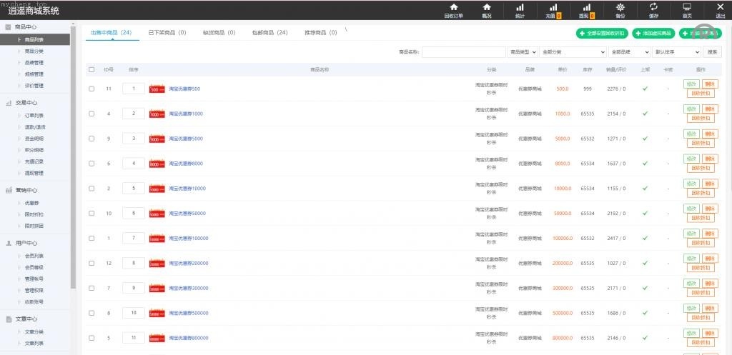 系统是逍遥商城二次开发的优惠券购物回购系统,支持的不仅限于淘宝优惠券,用户可根据需要更改产品类型。回收系统已直接集成,无需二次开发搭建,前台提交订单后即可完成回收。同时,新增功能支持为每个商品设置回收折扣。