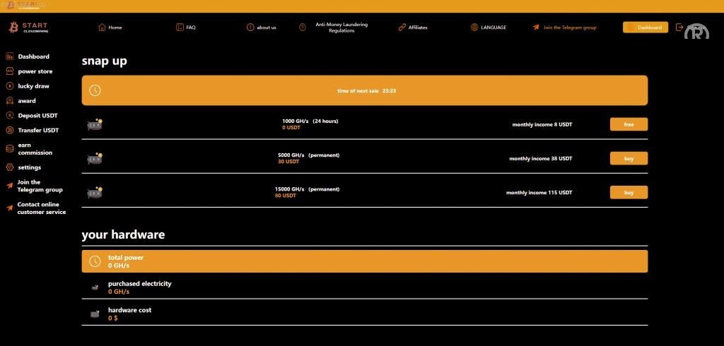 - 提供免费矿机抢购功能,矿机有效期为24小时,有效吸引用户参与。