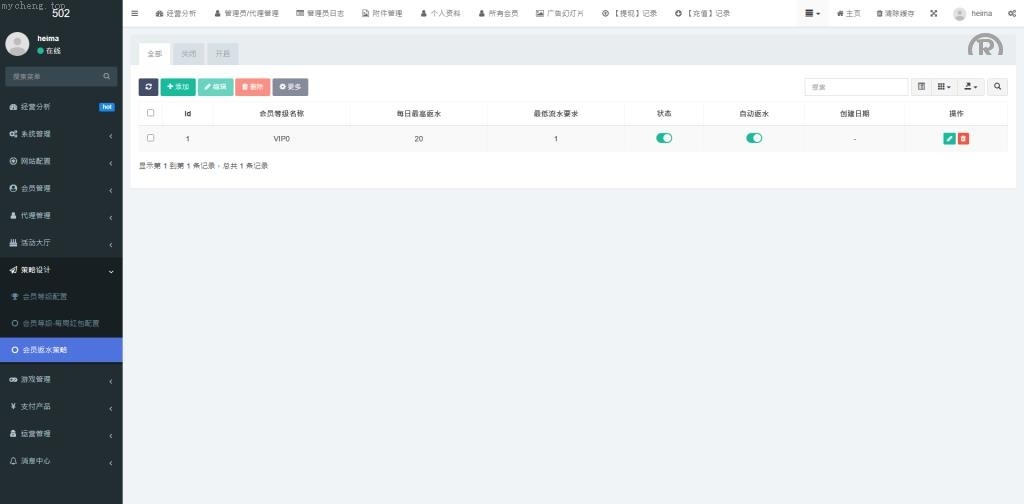 该系统支持策列,返水控制功能。源码支持多种语言,并提供钱包、虚拟币,微信支付宝等多种支付方式。